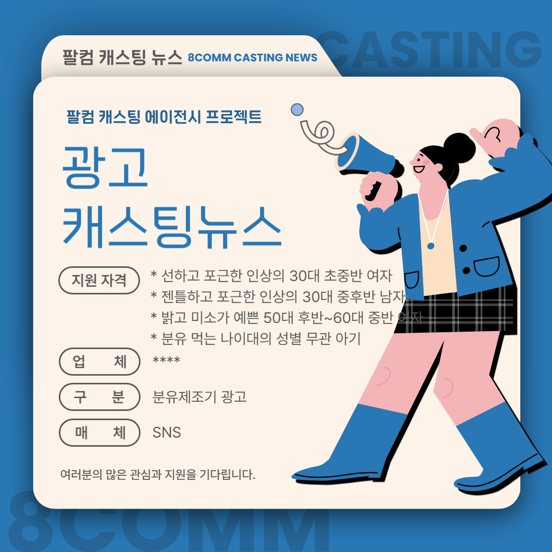 [캐스팅 뉴스]분유제조기 광고에 참여할 모델을 섭외합니다.